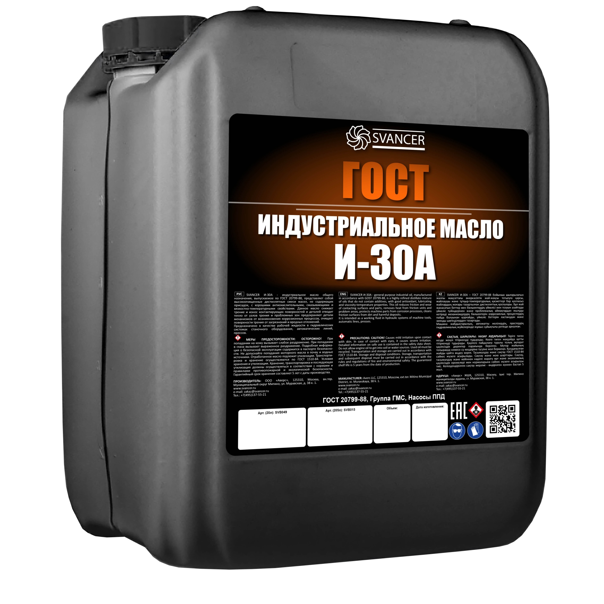 SVANCER И-30А - индустриальное масло общего назначения, выпускаемое по ГОСТ 20799-88, представляет собой высокоочищенные дистиллятные смеси масел, не содержащих присадок, с хорошими антиокислительными, смазывающими и вязкостно-температурными свойствами. Данное масло снижает трение и износ контактирующих поверхностей и деталей отводит тепло от узлов трения и проблемных зон предохраняют детали механизмов от возникновения коррозионных процессов, очищает поверхности трения от загрязнений и вредных отложений.